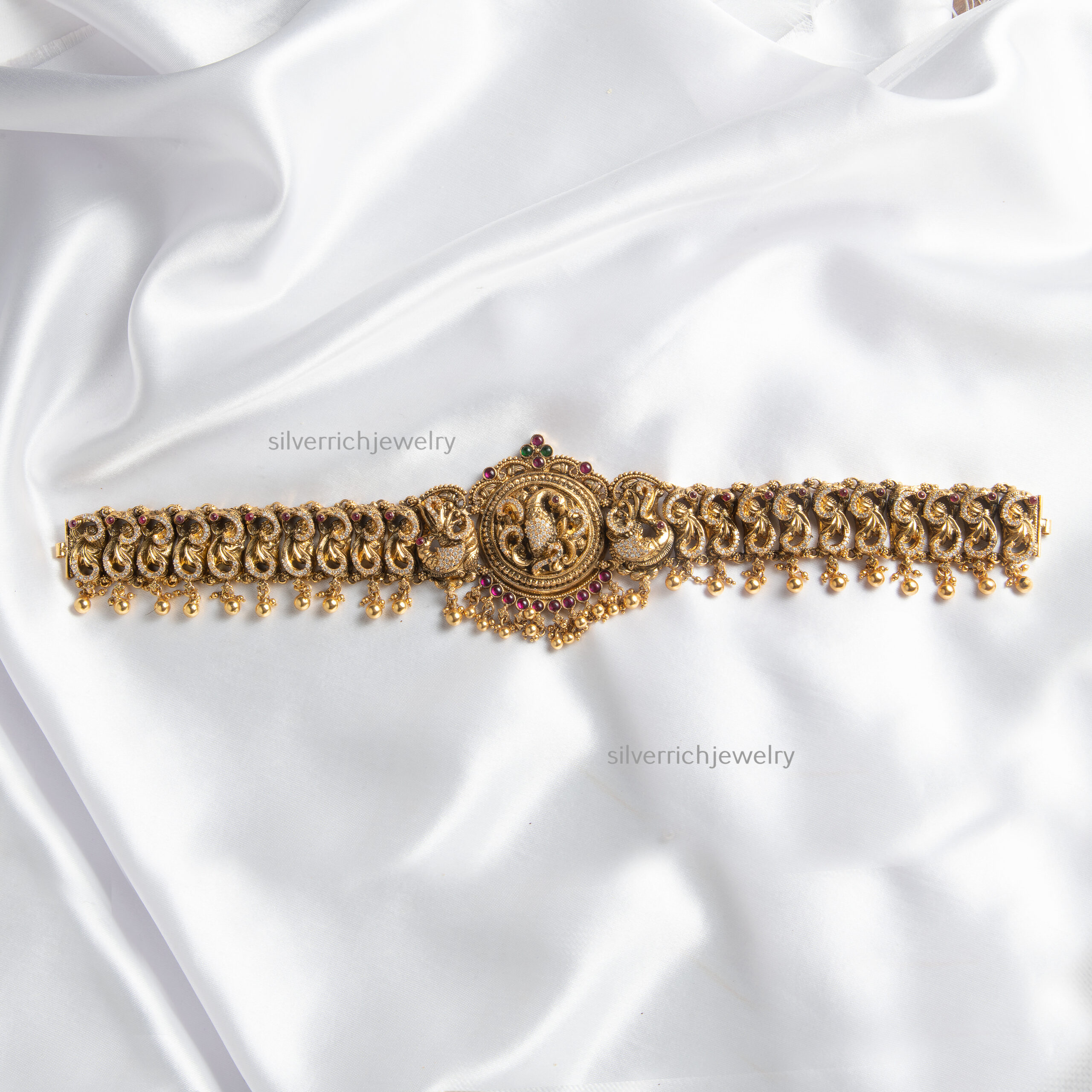 92.5 Silver gold plated hipbelt with semi precious stones