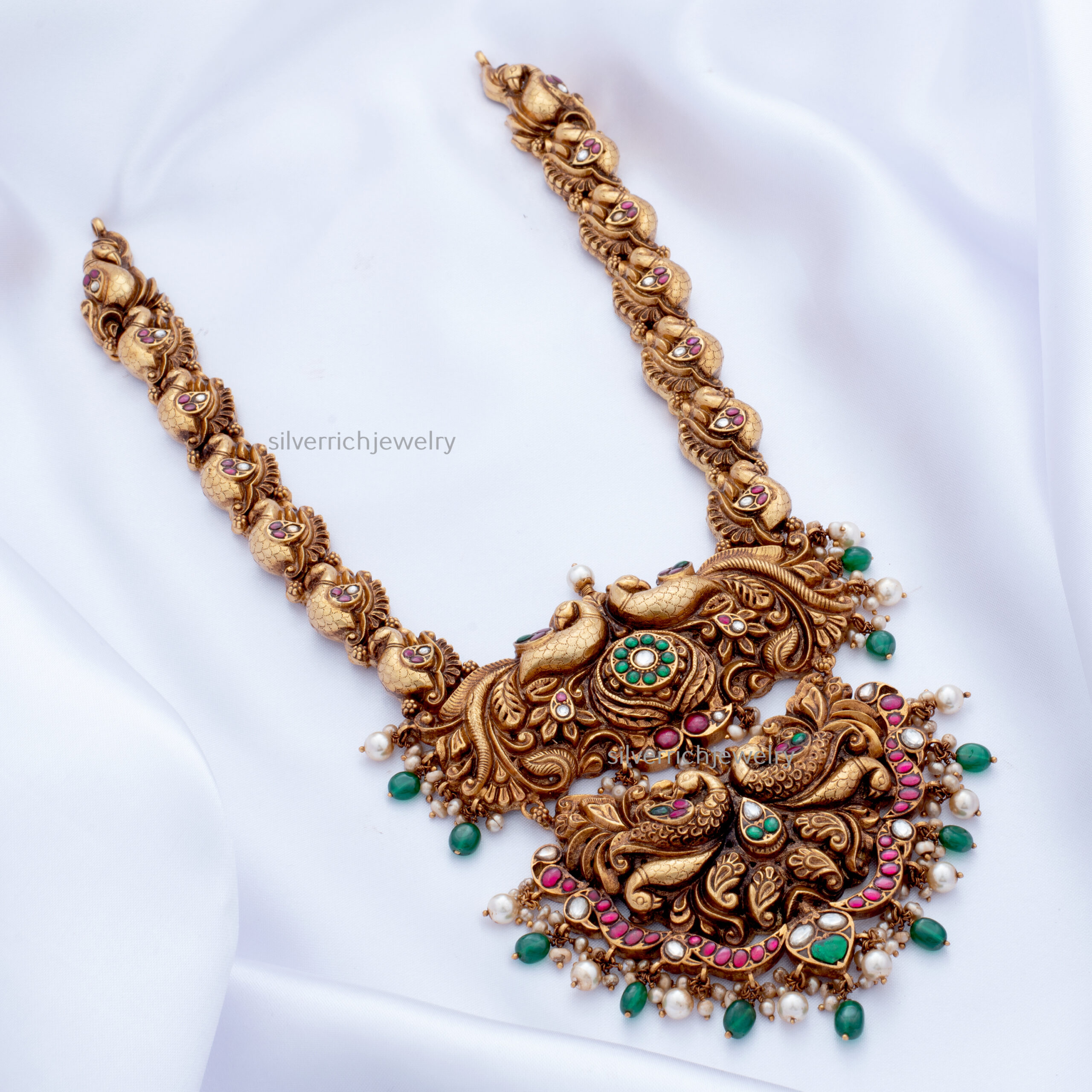 92.5 Silver gold plated haram with semi precious stones