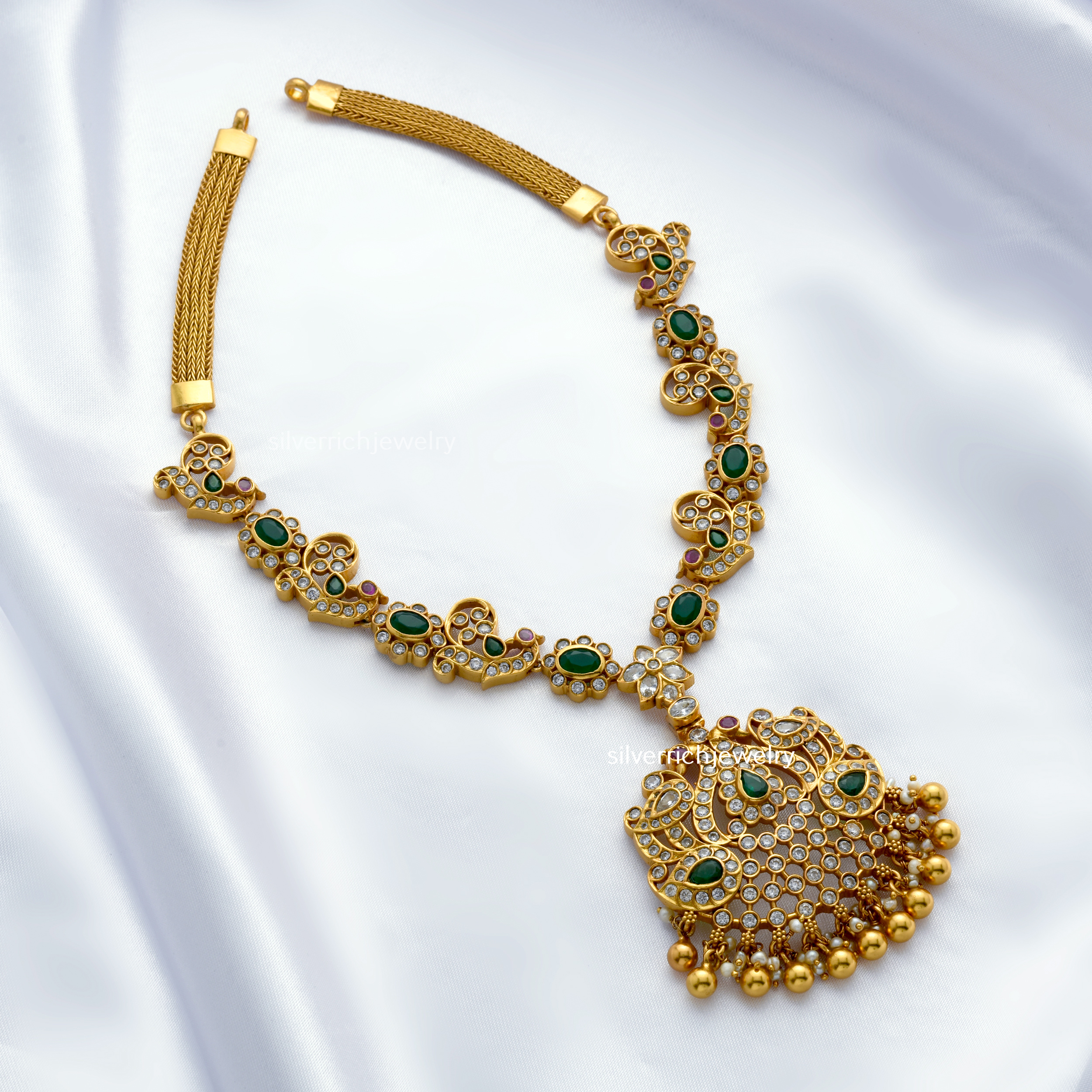 92.5 Silver gold plated necklace with semi precious stones