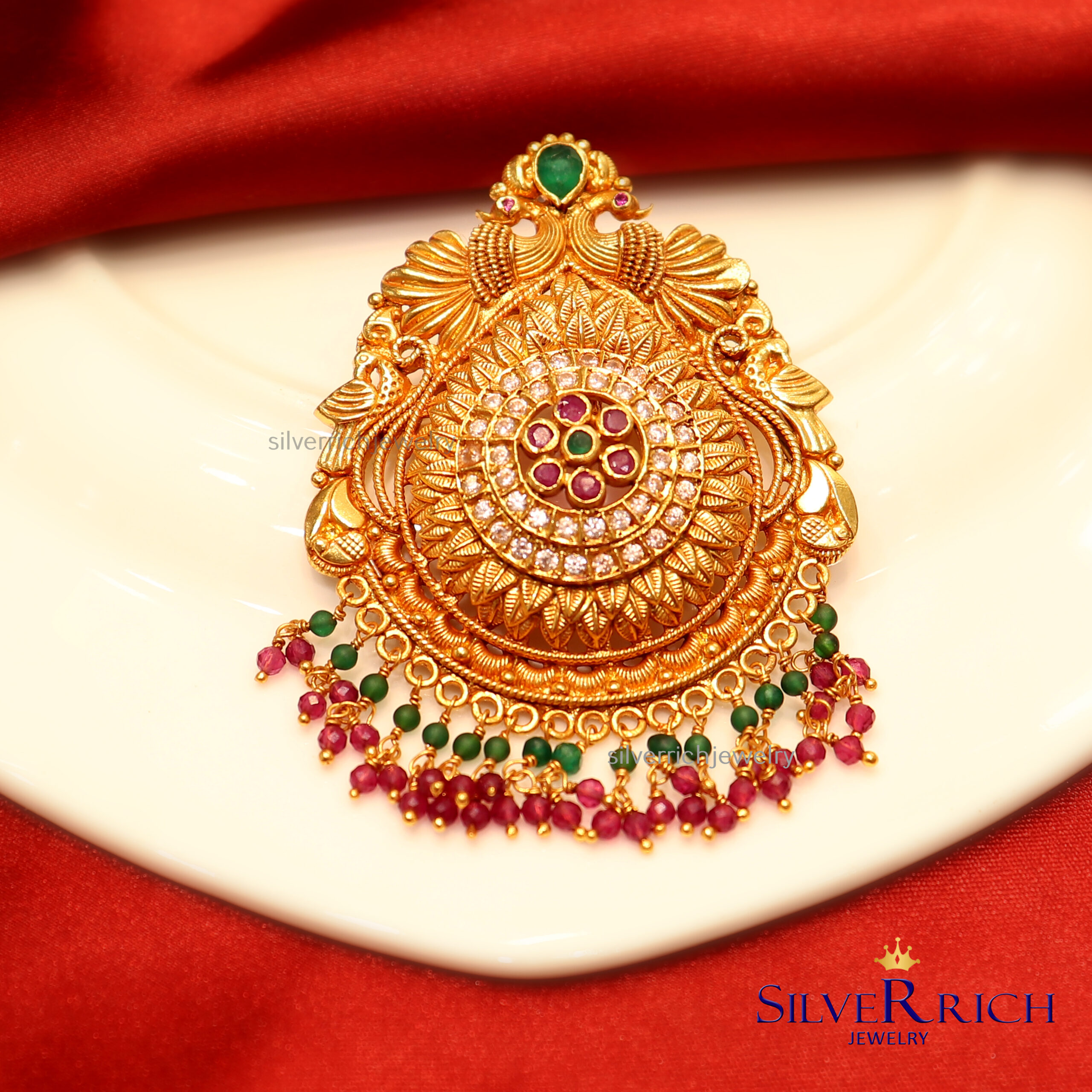 92.5 Silver gold plated pendant with semi precious stones