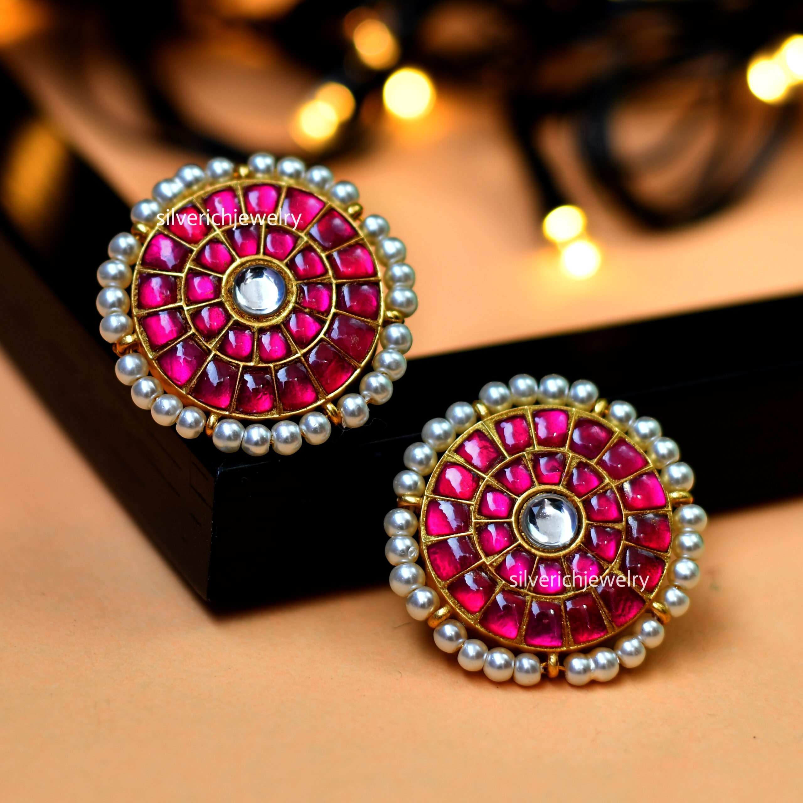 92.5 Silver gold plated stud with semi precious stones