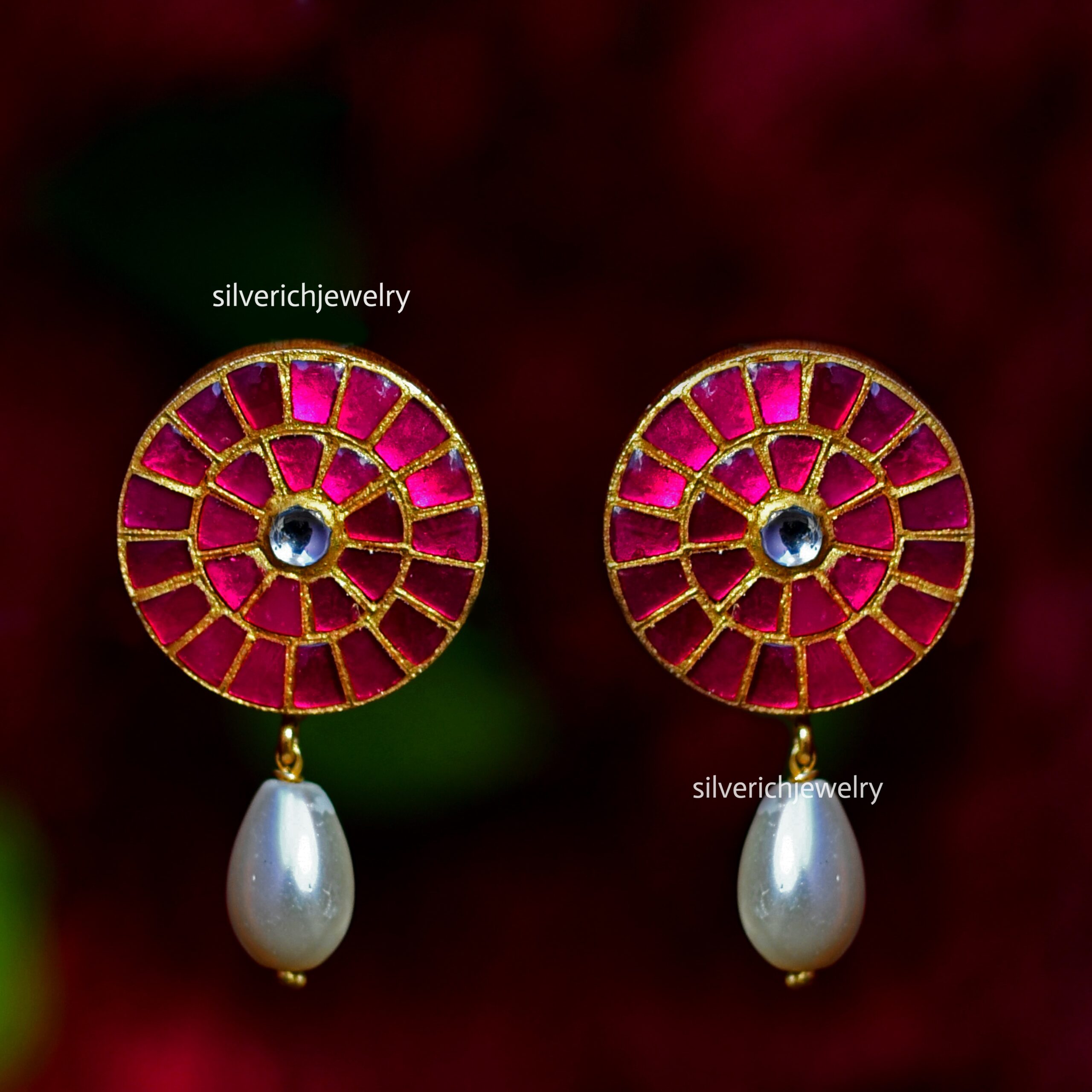 92.5 Silver gold plated stud with semi precious stones