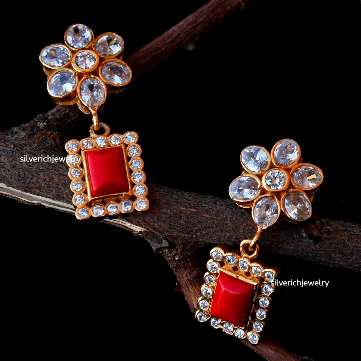 92.5 Silver gold plated stud with semi precious stones