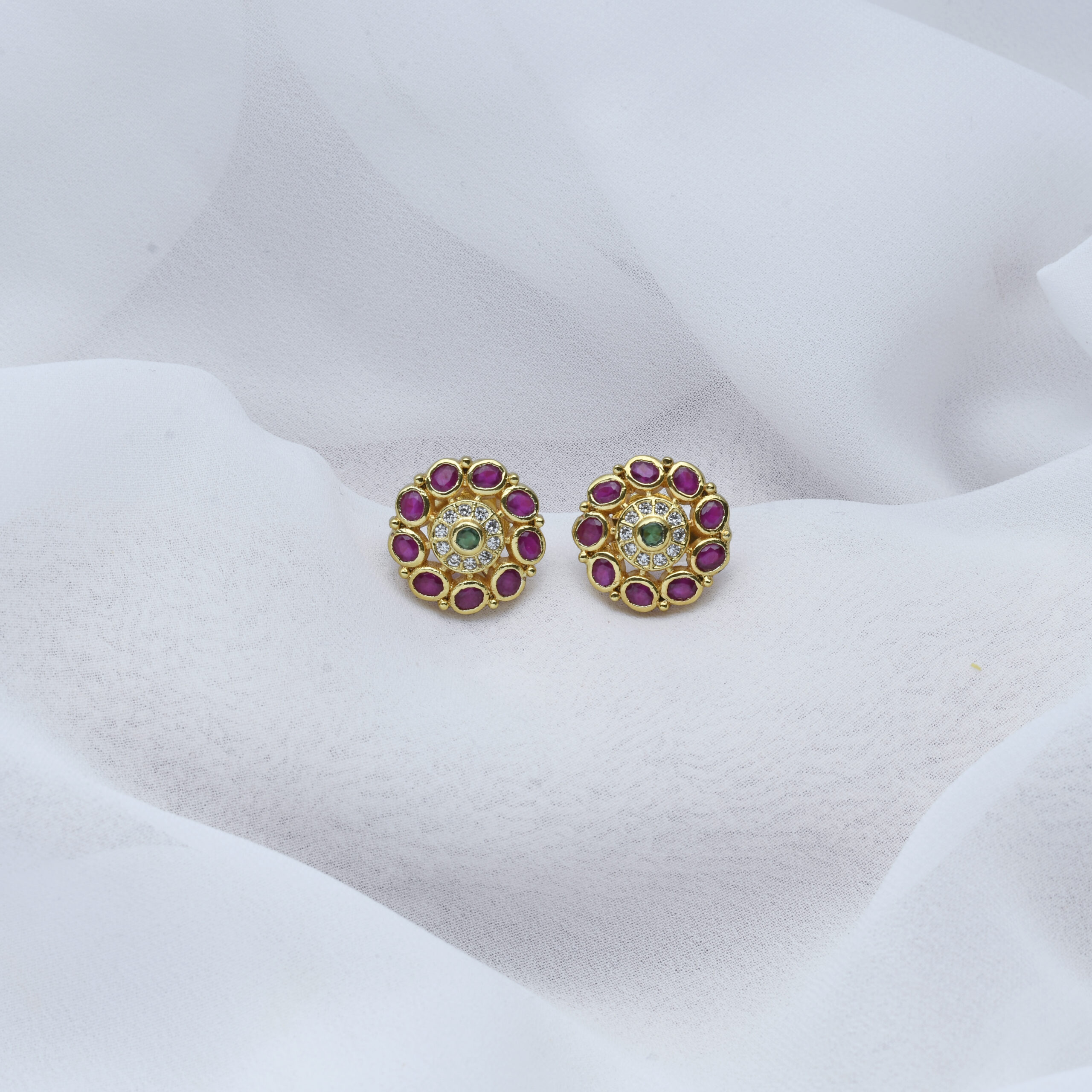 92.5 Silver gold plated stud with semi precious stones