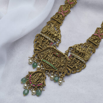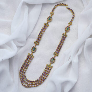 92.5 Silver gold plated casting haram with semi precious stones