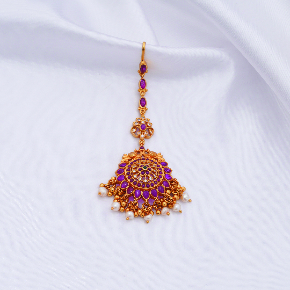 92.5 Silver gold plated maang tikka with semi precious stones